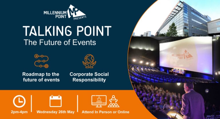 Get your free ticket to our own hybrid conference Talking Point: The Future of Events from 2pm – 4pm on Wednesday 26th May. This two-hour event consists of two panels that will examine the impact of the pandemic and what the next 12-18 months has in store for the events industry – topics include CSR, sustainability and current trends. You can join online or in-person to see how a hybrid event at Millennium Point works as well as join in a vital conversation around kickstarting the events and hospitality industry across the UK.